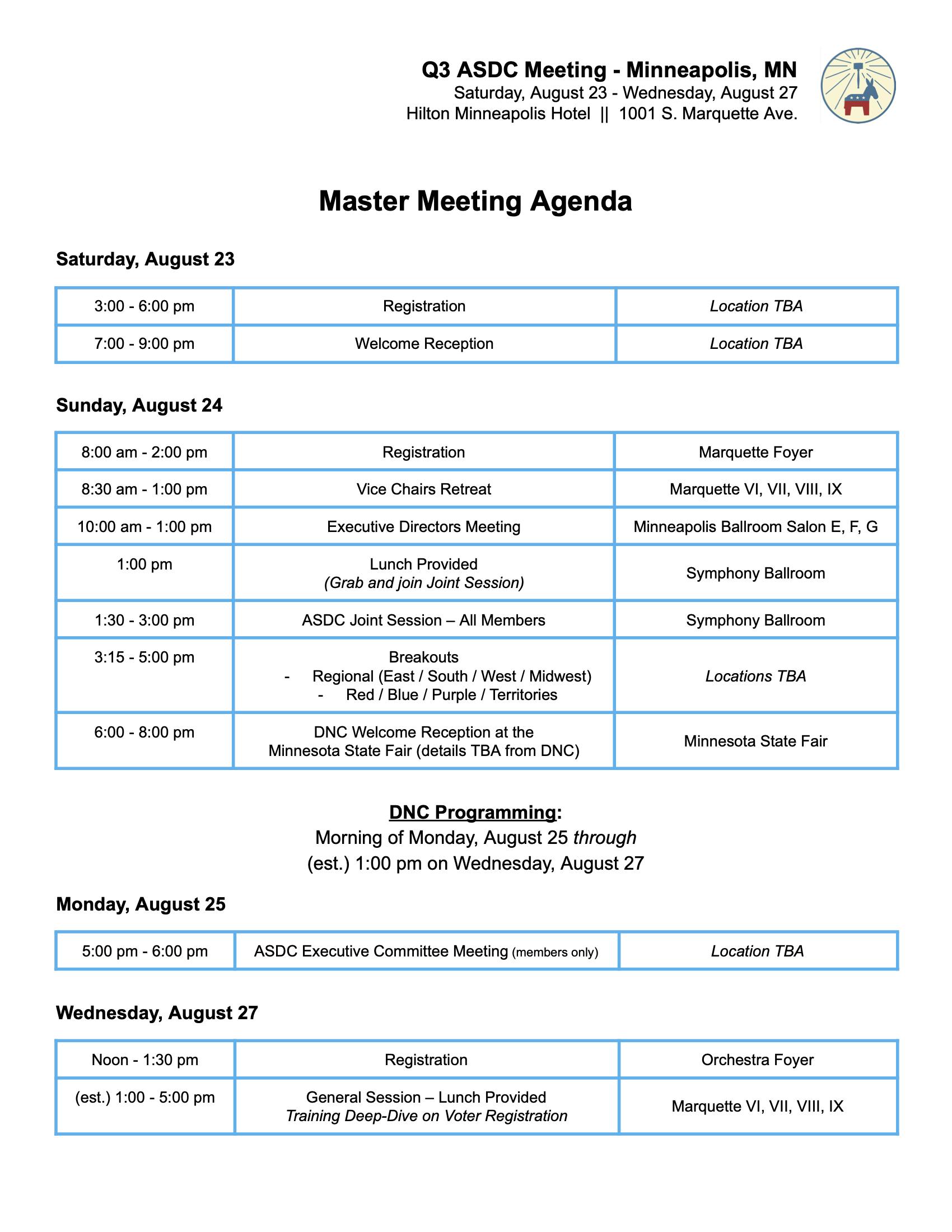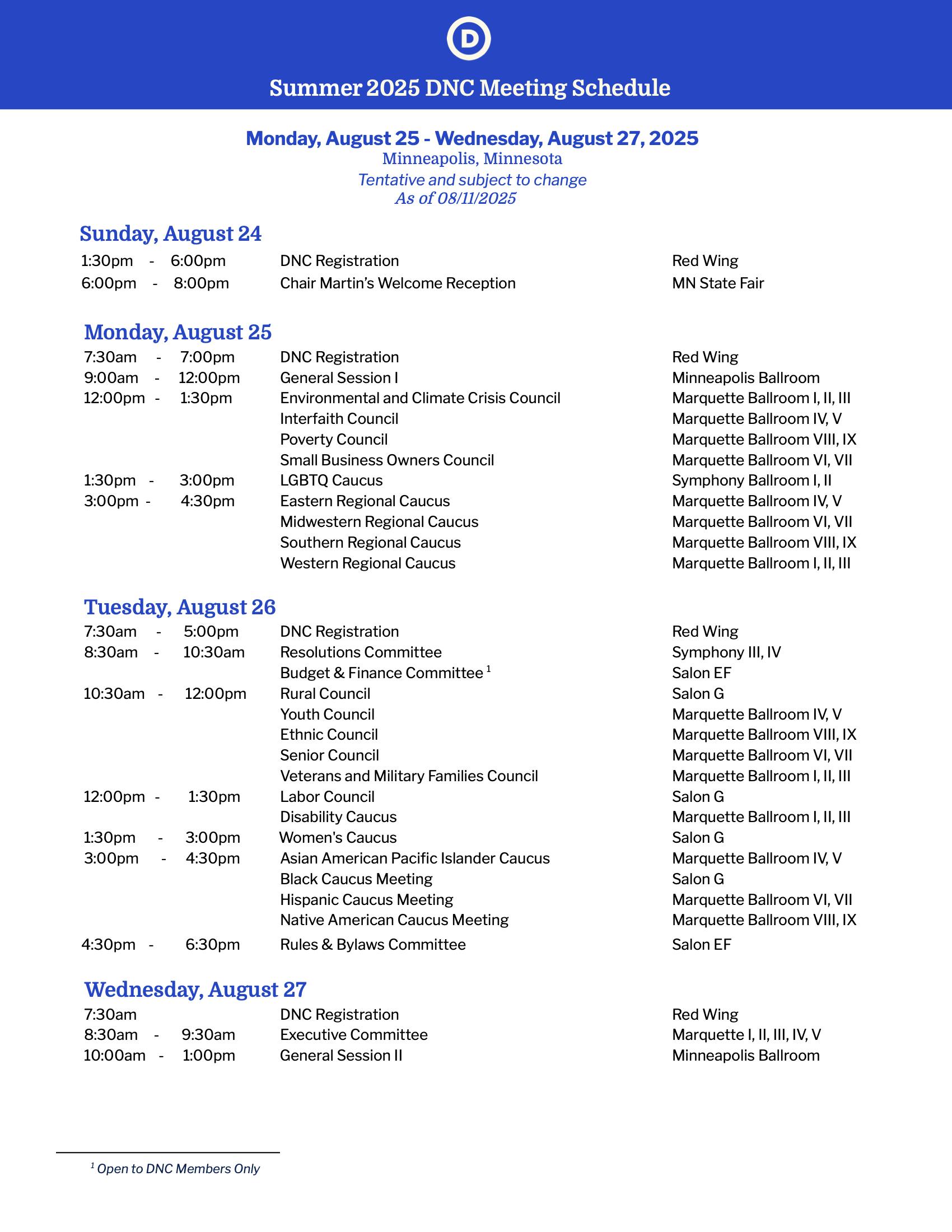 You can find the meeting schedule for the Summer DNC Meeting here 🔗.