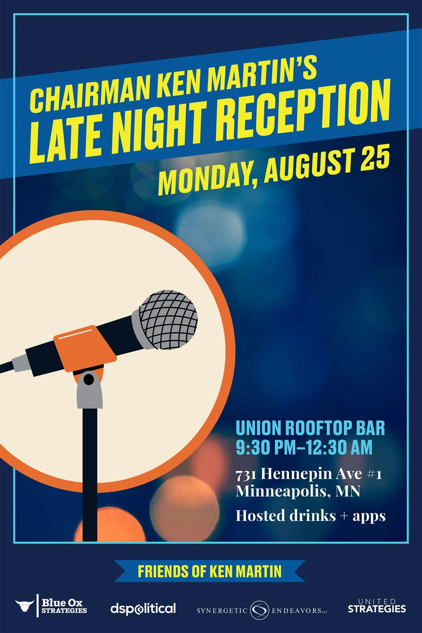On behalf of Chair Martin, you are invited to a reception on Sunday, August 24 at 6:00 p.m. CDT. We hope you can join us for a short speaking program, light drinks and appetizers, and exploring the Fair!
